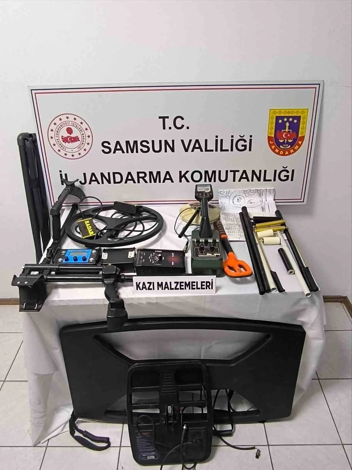Edinilen bilgiye göre, Samsun’un Tekkeköy ilçesinde jandarma ekipleri tarafından suç ve suçlularla mücadeleye yönelik yapılan araştırma sonucu kaçak kazı yapan şahıslar tespit edildi. Olayla ilgili olarak İstihbarat Şube Müdürlüğü, Kaçakçılık ve Organize Suçlarla Mücadele Şube Müdürlüğü ve Tekkeköy İlçe Jandarma Komutanlığı ekiplerince yürütülen ortak çalışmalar neticesinde, şüpheli şahısların ikamet ettiği Terme, Tekkeköy, İlkadım ve Kavak ilçelerinde 11 farklı adrese operasyon düzenlendi. Yapılan aramalarda tarihi değeri olan eşyalar ile çok sayıda kazı malzemeleri ele geçirildi.