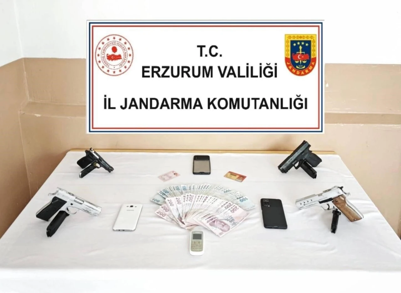 Erzurum İl Jandarma Komutanlığı ve Oltu İlçe Jandarma Komutanlığı tarafından gerçekleştirilen müşterek operasyonlarda bir araçta 4 adet tabanca, 5 adet şarjör, 23 adet 9 mm fişek, suçta kullanıldığı değerlendirilen 12 adet kimlik belgesi/kredi kartı, 15 bin 620 TL nakit para ve 4 adet telefon ele geçirildi. Olay şüphelisi bir şahıs, Cumhuriyet Savcısı’nın talimatıyla gözaltına alınarak hakkında adli işlem başlatıldı.
