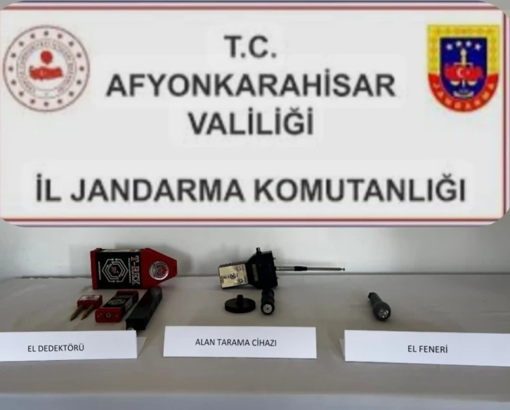 Afyonkarahisar’da jandarmayı görerek kaçan şahıslar kısa süreli bir kovalamaca sonrası yanlarında dedektör ve alan tarama cihazı ile yakalandı.