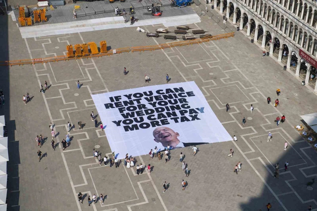 Forbes dergisinin dünyanın en zenginleri listesinde 4. sırada yer alan 61 yaşındaki Bezos, 25 yıllık eşi MacKenzie Scott ile evliliğinin sona ermesinden 4 yıl sonra 2023 yılında 55 yaşındaki Lauren Sanchez ile nişanlanmıştı. Çiftin düğünlerinin Venedik’te yapacaklarının duyulmasının ardından kent sakinleri, üç gün sürecek düğünün günlük yaşamda aksamaya yol açabileceğini belirtmişti. Protestocular, 13 Haziran’da Venedik’teki Rialto Köprüsü’nde "Bezos’a yer yok" yazılı bir pankart açmıştı. Çevreci sivil toplum kuruluşu Greenpeace ise pazartesi günü San Marco Meydanı’nda Bezos’un bir fotoğrafının yer aldığı ve "Düğününüz için Venedik’i kiralayabiliyorsanız daha fazla vergi ödeyebilirsiniz" yazılı dev bir pankart açmıştı. Dün düğün yerinin güvenlik endişeleri nedeniyle şehrin daha izole ve ulaşımı zor bir bölgesine taşındığı öğrenilmişti.