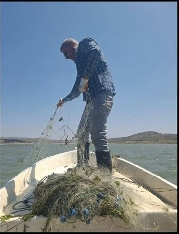 Afyonkarahisar’da Selevir Barajında yapılan denetimlerde bin 200 metre uzunluğunda ağ ele geçirildi.