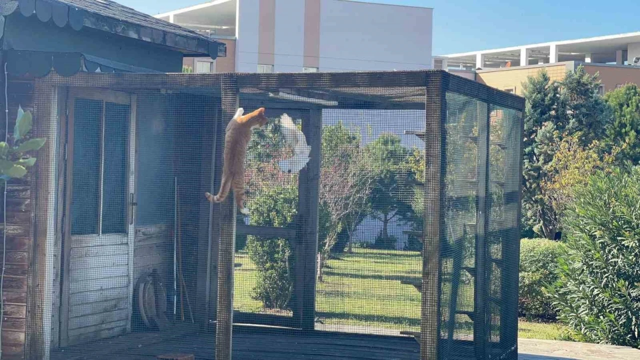 Osmaniye’de kafeste bulunan güvercini yakalamaya çalışan kedinin gülümseten amansız azmi, öğrenciler tarafından cep telefonu kamerasıyla kaydedildi.