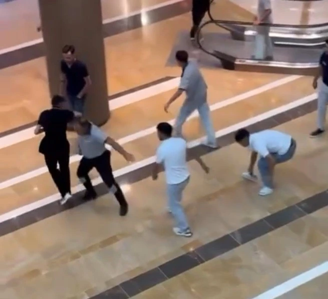Kavga daha sonra bir güvenlik görevlisinin müdahalesi ile son buldu.