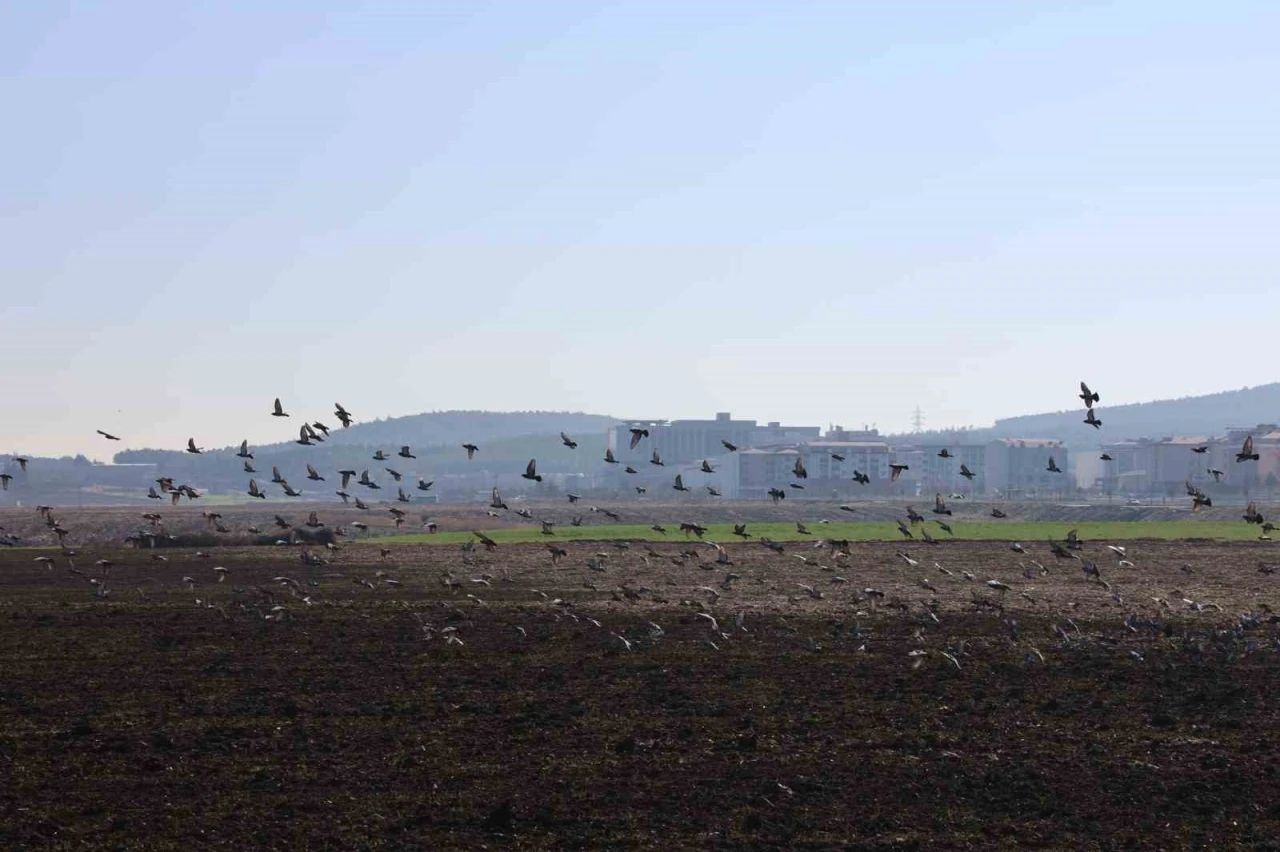 Kahramanmaraş’ta sürü halinde uçan güvercinler görsel şölen oluşturdu.