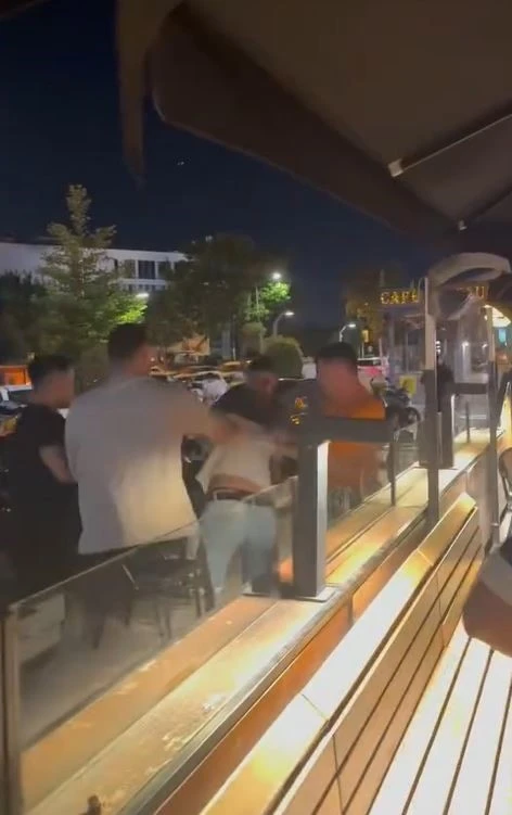 Tekme ve yumrukların havada uçuştuğu kavgada, bazı şahısların birbirlerine sandalye ve masa fırlattığı görüldü.