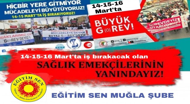 Eğitim Sen Muğla Şube Başkanı Birdal Savran, pademi sürecinde 519 sağlık emekçisinin hayatını kaybettiğini, bu süreçte Muğla'da kamuda çalışan 50'den fazla doktorun istifa ettiğini belirterek, "14-15-16 Martta hakları için ‘G(ö)REVDEYİZ diyen tüm sağlık emekçilerinin mücadelesine selam olsun" dedi. Savran yaptığı açıklamada şu ifadeleri kullandı: "Sağlık emekçileri Hayata ve topluma adanmış bir mesleğin onurlu üyeleri olarak emeğiyle, bilgisiyle, uzun yıllar süren eğitim ve mesleki deneyimlerine dayalı birikimleriyle insanlara hizmet veriyor. Pandeminin başladığı ilk günden bugüne ülkemizde 519 sağlık emekçisi halkın sağlığını ve yaşamını korurken hayatını kaybetmiştir. Hayatını kaybedenler başta olmak üzere tüm sağlık emekçilerini saygıyla anıyor, bütün sağlık çalışanlarına verdikleri insanüstü emek için teşekkür ediyoruz."