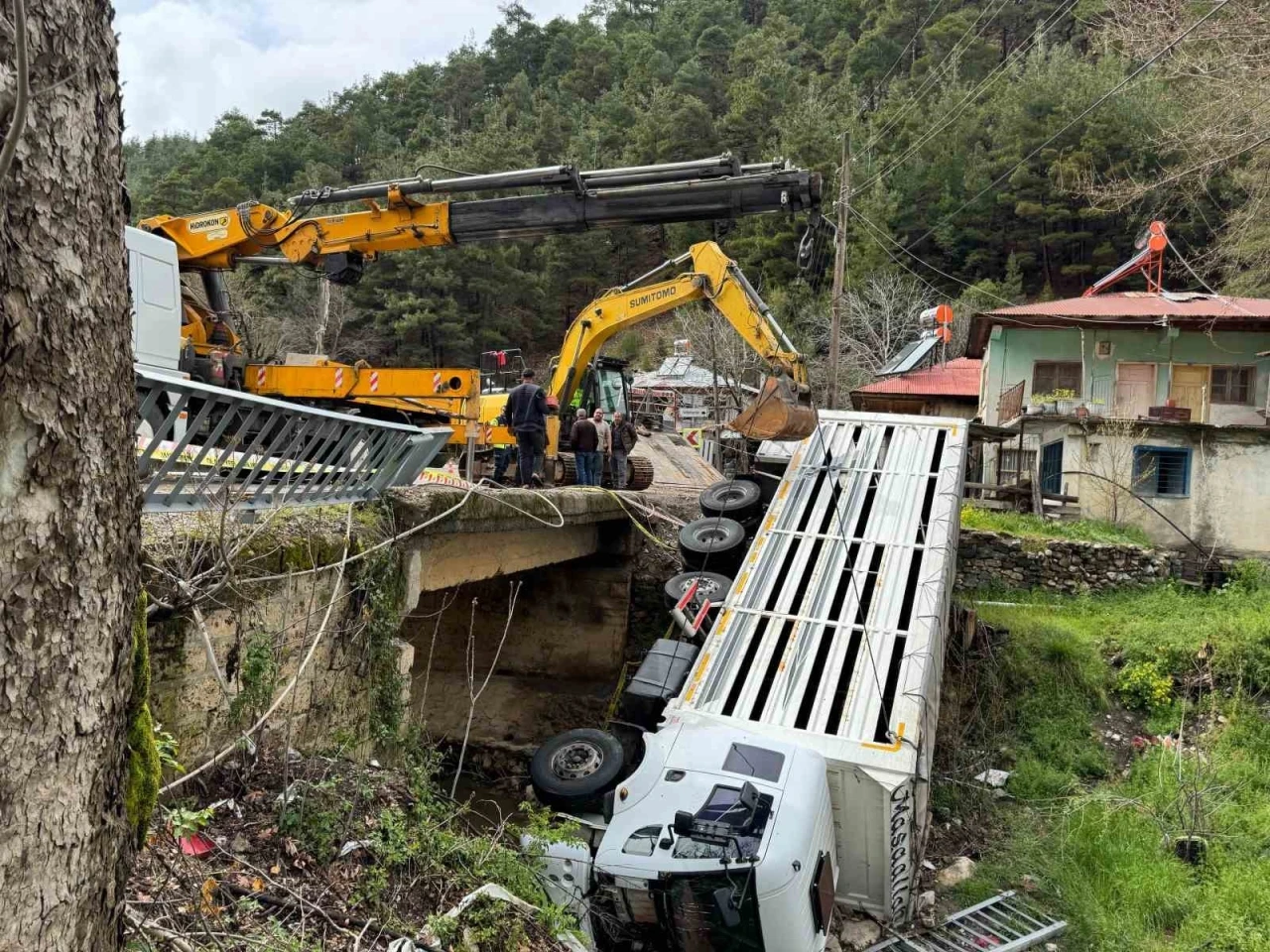Adana’da kontrolden çıkan kamyonun köprüden düştüğü kaza sürücü hafif yaralandı.