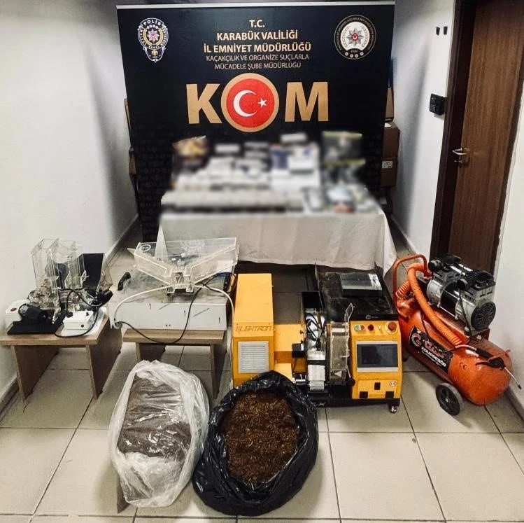 Karabük’te polis ekiplerinin düzenlediği operasyonda 20 kilogram tütün ile 12 bin 300 adet makaron ele geçirildi.