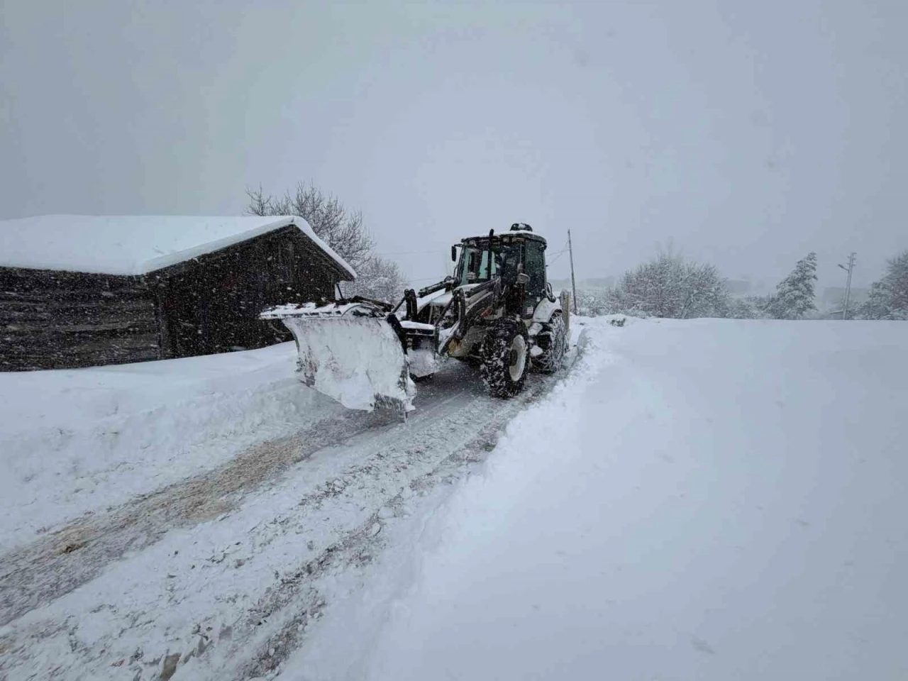 Karla mücadele kapsamında 11 greyder, 1 kar bıçaklı kamyon, 2 yükleyici, 9 bekoloader ve 7 pick-up olmak üzere toplam 30 iş makinesiyle sahada çalışma yürütülüyor.