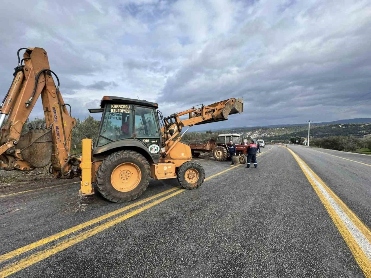 Aydın’ın Karacasu ilçesinde belediye ekipleri, ilçe girişinden merkeze kadar olan yol hattı boyunca temizlik çalışmalarını sürdürüyor. Karacasu Belediyesi’nden yapılan açıklamada, "Belediye Başkan vekilimiz Ruhi Öncü, Belediye Başkan Yardımcımız Murat Büyükgümüş ile birlikte ilçe girişimizden başlayıp ilçe merkezimize kadar devam edecek olan temizlik çalışmalarını yerinde inceledi. Daha temiz ve düzenli bir Karacasu için ekiplerimiz aralıksız çalışmaya devam ediyor" denildi.
