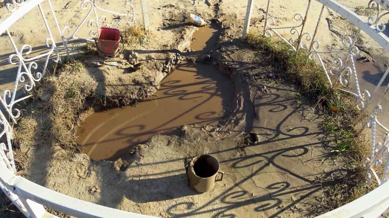 Karaman’ın Sarıveliler ilçesine bağlı Göktepe beldesinde mezarlıkta çıkan ve çeşitli hastalıklara iyi geldiği belirtilen yağlı çamur genellikle yaz aylarında çoğalıyor, ilgi görüyor.