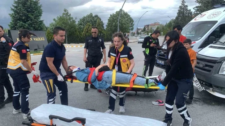 Kaza, Yunuskent Mahallesi Zeytin Dalı Bulvarı üzerinde bulunan valilik kavşağında meydana geldi. İddiaya göre, M.Ç. yönetimindeki 01 AFJ 190 plakalı minibüs, kavşakta beklemekte olan Y.G. idaresindeki 70 FS 856 plakalı motosiklete arkadan çarptı. Çarpmanın etkisiyle motosiklette yolcu olarak bulunan N.G. isimli kadın yola savrularak yaralandı. İhbar üzerine olay yerine sağlık ve polis ekipleri sevk edildi. Kazada yaralanan kadın sağlık ekibinin olay yerinde yaptığı ilk müdahalenin ardından ambulansla kaldırıldığı Karaman Eğitim ve Araştırma Hastanesi’nde tedavi altına alınırken, sağlık durumunun iyi olduğu öğrenildi. Geldi bana arkadan çarptı