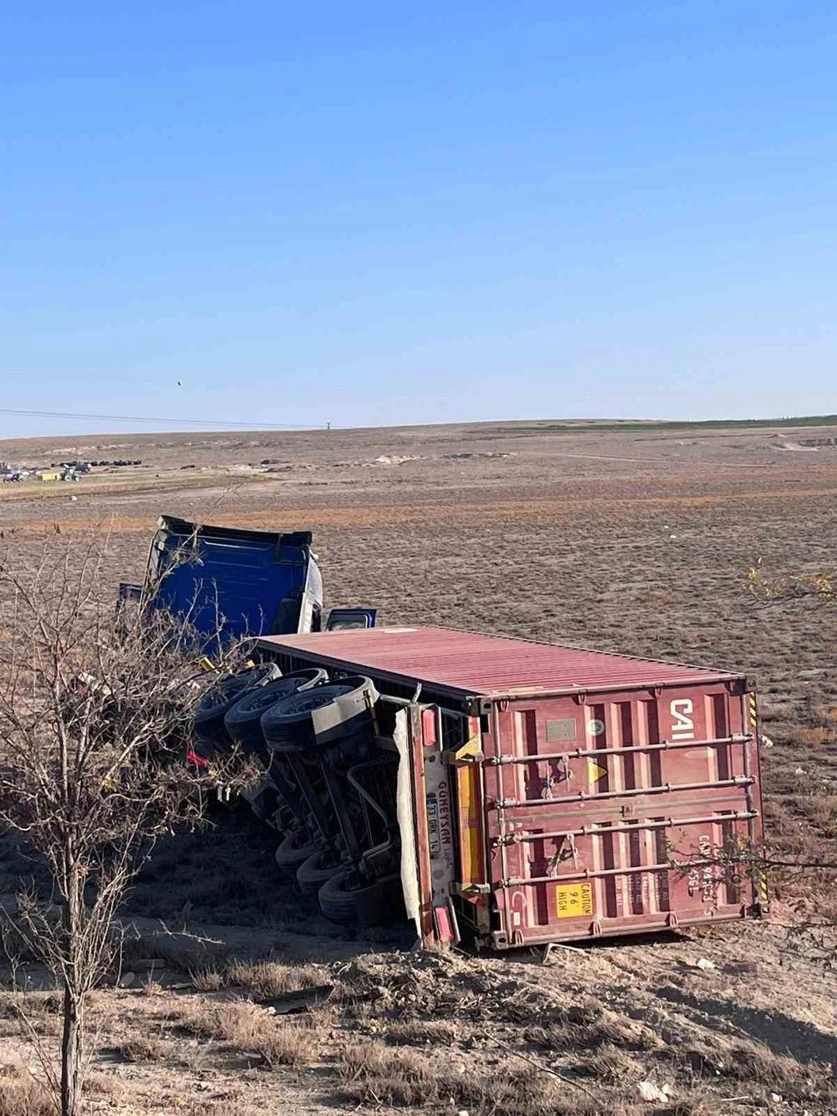 Konya’nın Karapınar ilçesinde kontrolünden çıkan çekicinin devrilmesi sonucu sürücü yaralandı.