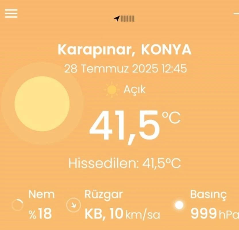 Konya’nın Karapınar ilçesinde hava sıcaklıkları mevsim normallerinin üzerinde seyretmeye devam ediyor. Bugün hava sıcaklığı 41.5 dereceye ulaşarak, ilçede ölçülen en yüksek sıcaklık rekorunu kırdı. Önceki rekor, 2000 yılının Temmuz ayında kaydedilen 41.2 dereceydi.