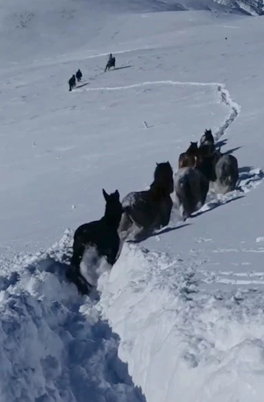 Bitlis’in Hizan ilçesinde yoğun kar yağışı nedeniyle mahsur kalan at ve katırlar, güvenlik korucularının yardımıyla kurtarılarak sahiplerine teslim edildi.