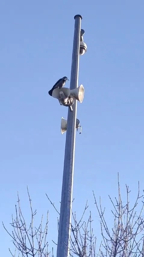 ELAZIĞ (İHA) – Elazığ’da bir direğin üzerine çıkan karga, Allah diye bağırırken o anlar bir vatandaşın cep telefonu kamerasına yansıdı.