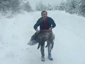 Sinop’un Erfelek ilçesinde karlı yolda karşılaştığı yaban domuzu sürüsünden bir yavruyu araçtan inerek kovalayıp eliyle yakalayan vatandaş, sosyal medyada büyük yankı uyandıran görüntülere ilişkin konuştu.