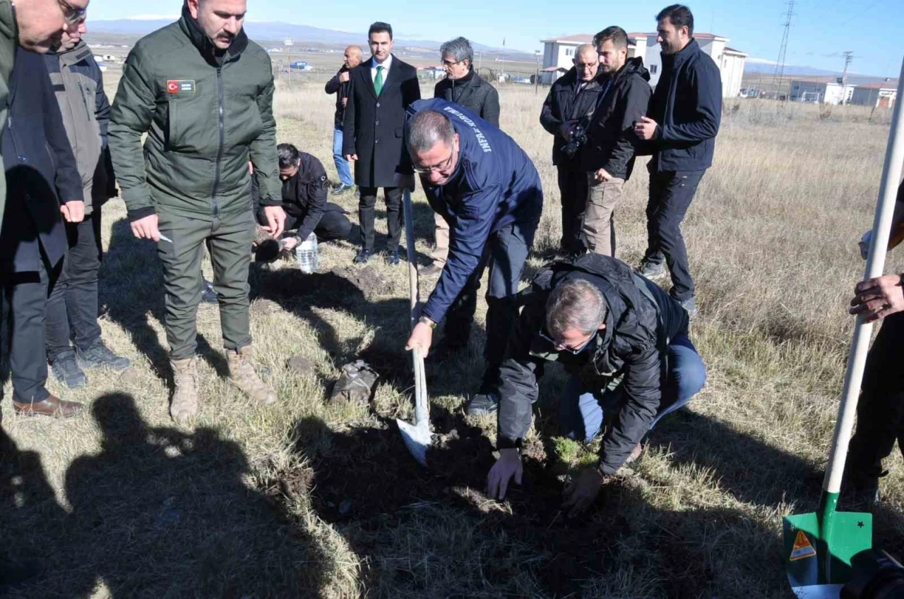 Kars’ta fidanlar toprakla buluştu. Toprakla buluşan fidanlara can suyu verildi.