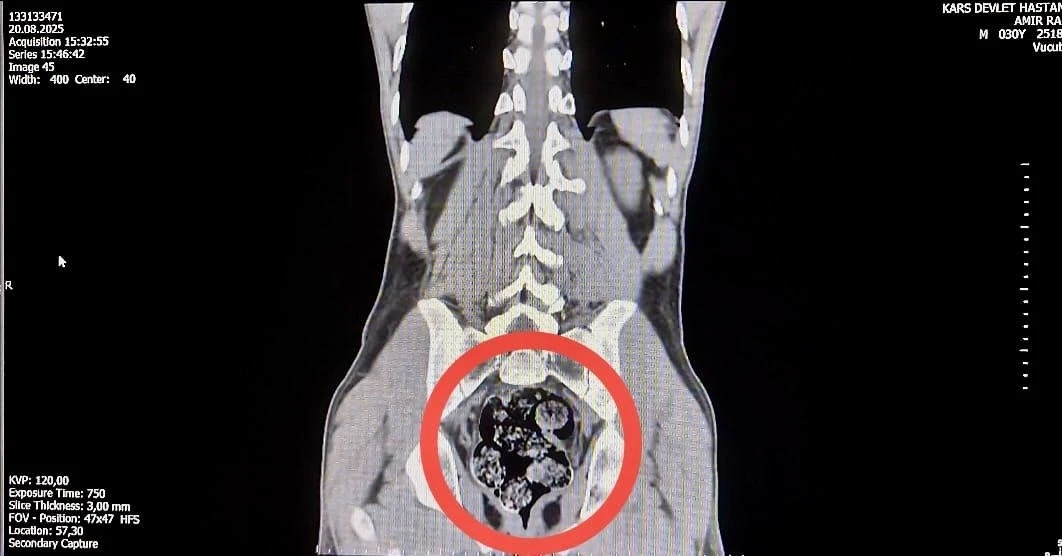İl Emniyet Müdürlüğü’ne getirilen ve durumundan şüphelenilen kuryelerden Shekarbaghanı, detaylı arama için Kars Harakani Devlet Hastanesi’ne götürüldü. Hastanede yapılan emar ve röntgen kontrollerinde şüphelinin makatında cisim olduğu belirlendi. Yapılan cerrahi müdahalede, şüphelinin makatından 7 parça halinde 203,02 gram metamfetamin çıkarıldı.