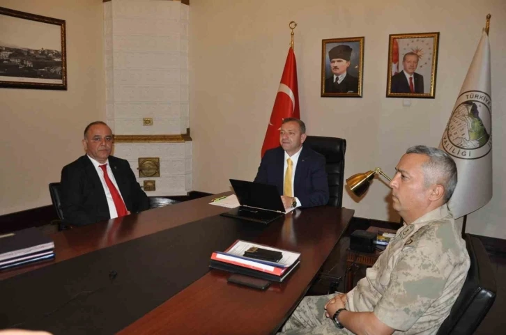 Valilik Toplantı Salonu’nda düzenlenen toplantıya İl Emniyet Müdürü Mehmet Ömür Saka, İl Jandarma Komutan Vekili Albay Mahmut Aydın ve yerel ile ulusal basının temsilcileri katıldı.