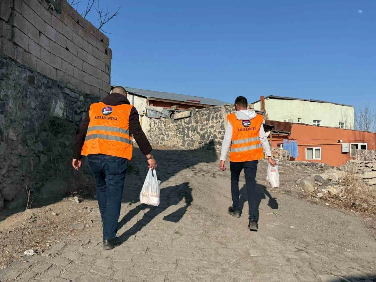 Kars Belediyesi Ramazan ayında evde yaşlı bakım hizmeti kapsamında sıcak yemek dağıtımı yapıyor.