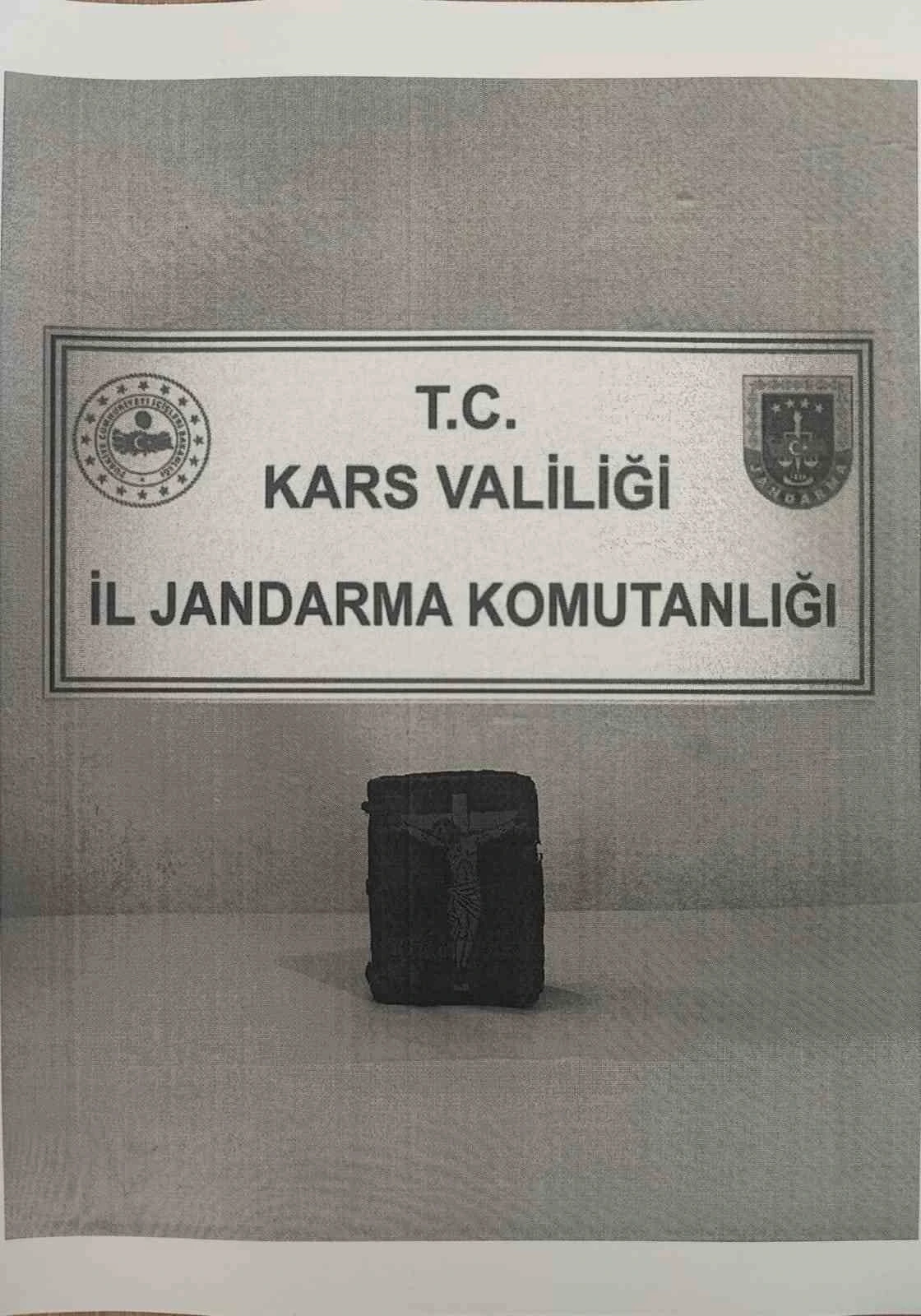 Kars’ta, jandarma ekipleri, önemli bir operasyona imza attı. Ellerinde bulunan kültür varlığı eseri satmaya çalışan şahıs, alıcı kılığına giren jandarma ekipleri tarafından suçüstü yakalandı.