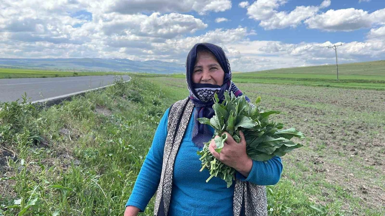 Arpaçay ilçesine bağlı Değirmen Köprü köyünde yaşayan Leyla Yılmaz, evelik otunun bahar aylarında kendiliğinden yetiştiğini belirtti.