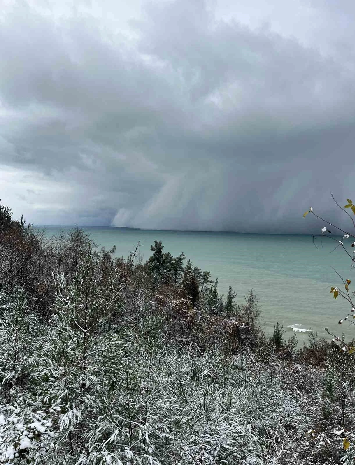Kastamonu’nun İnebolu ilçesinde Karedeniz üzerindeki ’deniz etkili kar yağışı’ ilginç görüntülere sahne oldu.