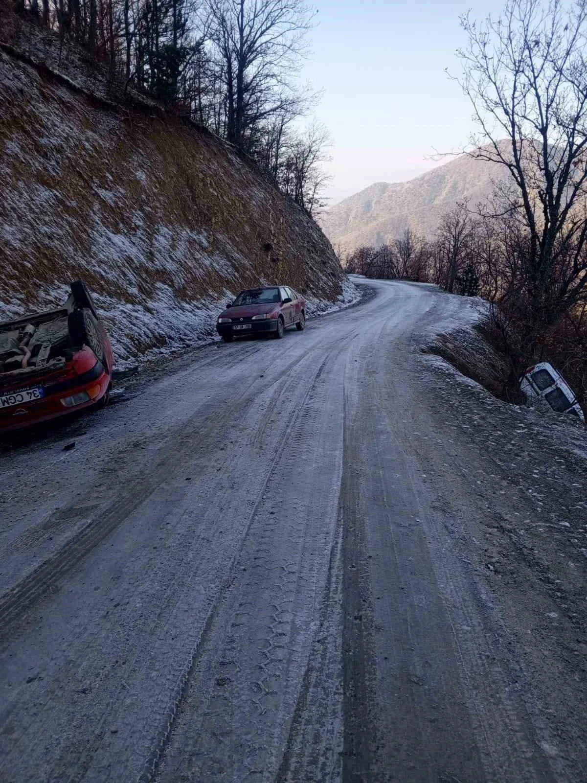 Kastamonu’nun Hanönü ilçesinde aynı noktada gizli buzlanma sebebiyle yoldan çıkan iki otomobil kaza yaptı. Kazalarda araçların sürücüleri yaralandı.