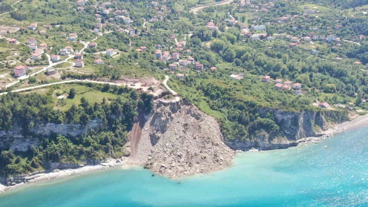 Kastamonu’da meydana gelen heyelan sebebiyle Cide-İnebolu karayolu ulaşıma kapandı. Yoldan kopan toprak kütlesi, Karadeniz ile birleşti.