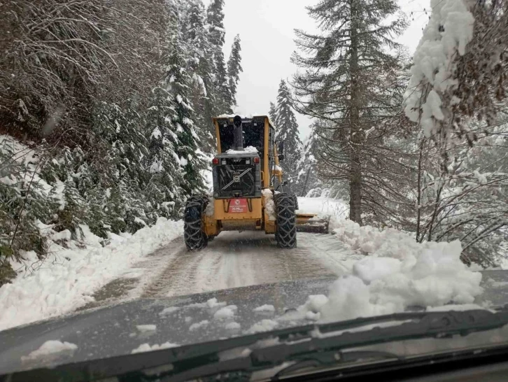 Kastamonu’nun yüksek kesimlerinde etkili olan kar yağışı sonrası kapanan köy yollarını açmak için çalışmalar devam ediyor.