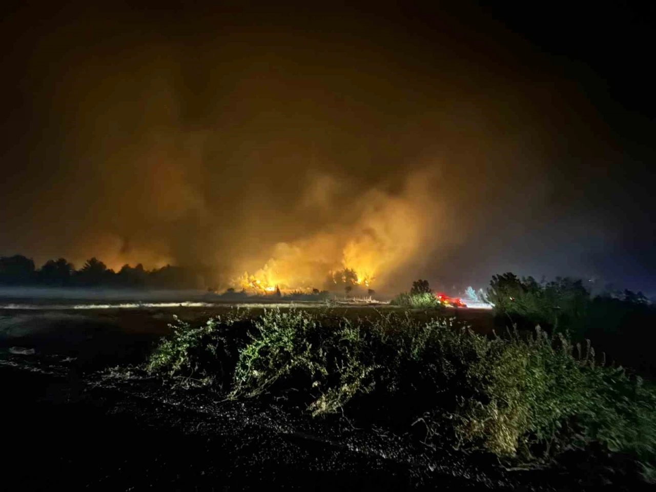 Geceyi aydınlatan alevlere müdahale devam ediyor.