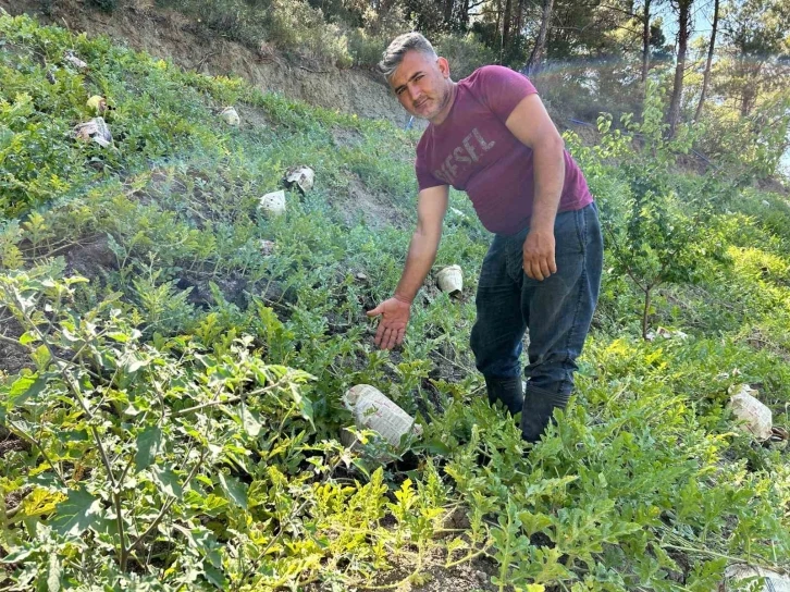 Depremin vurduğu Hatay’da yaralar üreterek ve emek vererek sarılmaya devam ediyor. Bereketli topraklarında birçok ürün yetişen Hatay’da yaz mevsiminin gelmesiyle birlikte damak çatlatan lezzetlerde sırasıyla hasat ediliyor. Arsuz ilçesi Kurtbağı Mahallesi’nde açık alanda yetiştirilen karpuzun hasadı başladı. Lezzetiyle damaklarda tat bırakan doğal karpuz, tarladan kilogramı 10 ile 15 TL arasında alıcı buluyor. Hava sıcaklığının mevsim normallerinin üstünde gittiği bu günlerde Adana ve Diyarbakır’da çiftçinin ürünü ani sıcaklıkla birlikte zarar görmüştü. Kurtbağı Mahallesi’nde karpuz üreten Sezer Kala, mahsulün yanmaması için çözümü tek tek gazeteyle sarmakta buldu. “Güneşin karpuzu yakmasını önlemek için gazeteyle önce denedim, sonra baktım faydasını gördüm”
