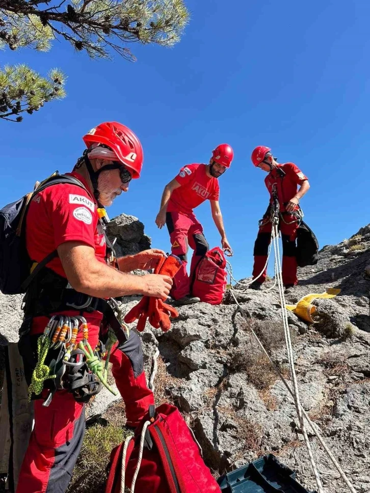 Fethiye’nin Ölüdeniz Mahallesi’nde bulunan Babadağ’daki kamp alanı yakınındaki bir uçurumda mahsur kalan kedi AKUT ekipleri tarafından kurtarıldı.