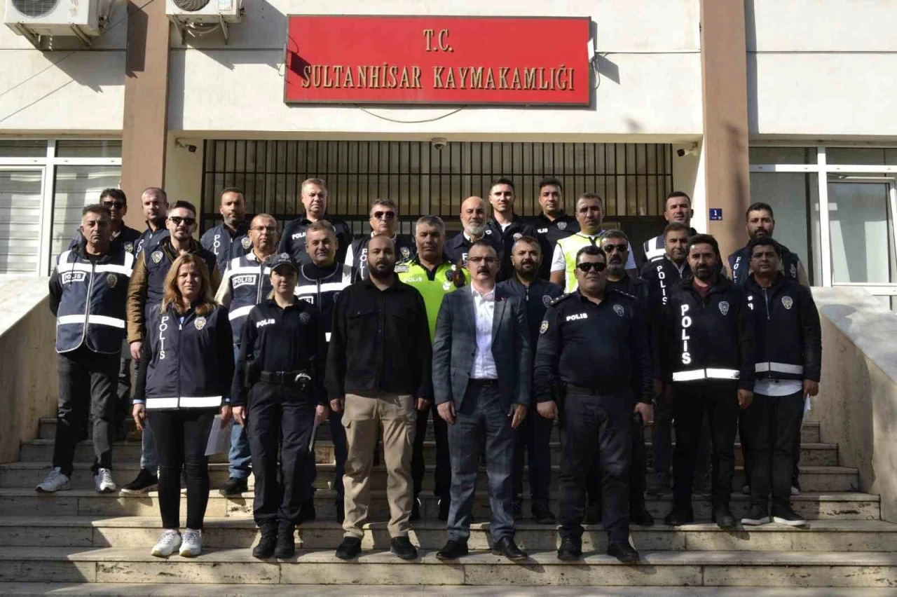 Aydın’ın Sultanhisar ilçesinde, kamu düzeninin sağlanması ve yürütülen başarılı operasyonlarda gösterdikleri üstün gayret nedeniyle emniyet personelleri Kaymakam Ali Ekber Ateş tarafından takdir belgesiyle ödüllendirildi. İlçe Emniyet Müdürlüğü bünyesinde görev yapan ve Sultanhisar’ın huzuru için gece gündüz demeden çalışan personel için Kaymakamlık makamında tören düzenlendi. Kaymakam Ali Ekber Ateş, yürütülen operasyonlardaki kararlılıkları ve özverili çalışmaları dolayısıyla polis memurlarını tebrik ederek, başarı belgelerini takdim etti. Törende konuşan Kaymakam Ateş, ilçe genelinde kamu güvenliğinin sağlanmasında emek veren tüm emniyet personeline teşekkür etti. Kaymakam Ateş, "Devletimizin güvenlik güçleri, milletimizin huzuru için büyük bir özveriyle çalışıyor. Sizlerin gayreti sayesinde ilçemizde güven ortamı her geçen gün daha da güçleniyor. Görevlerinizde başarılarınızın devamını diliyorum" dedi. Başarı belgesi alan polis memurları da Kaymakam Ateş’e teşekkür ederek, vatandaşların huzuru için görevlerini aynı kararlılıkla sürdüreceklerini ifade etti.