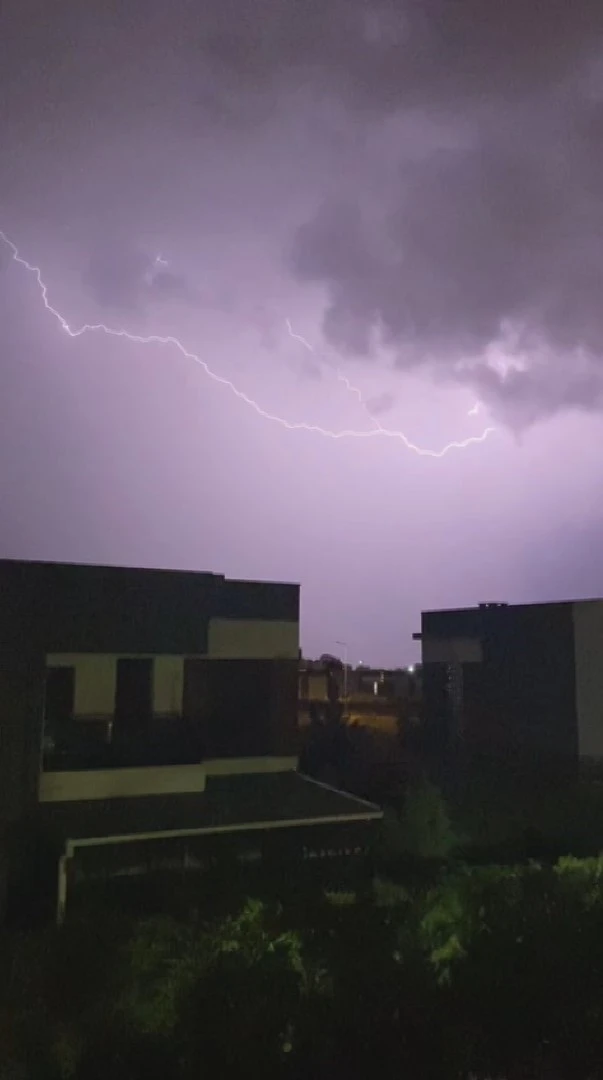 Kayseri’de etkili olan sağanak ve dolu yağışının ardından şimşekler gökyüzünü aydınlattı.