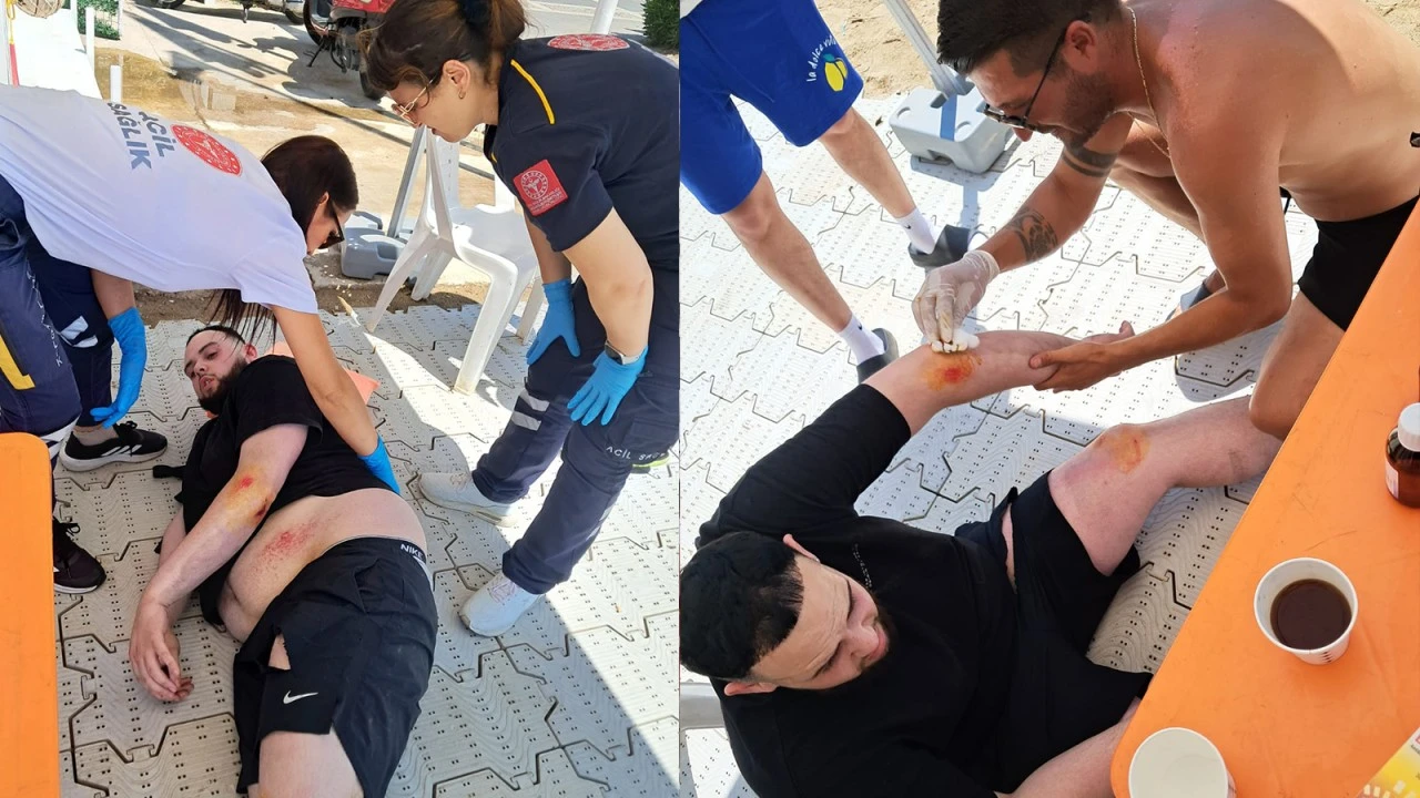 Marmaris Atatürk Caddesi’nde öğle saatlerinde meydana gelen kazada, bir turistin kullandığı motosiklet ile 82 yaşındaki bir vatandaşın kullandığı üç tekerlekli elektrikli bisiklet çarpıştı. Çarpışmanın etkisiyle motosiklet sürücüsü olan turist yere düştü. Vücudunun çeşitli yerlerinden hafif şekilde yaralanan turiste ilk müdahaleyi Marmaris Belediyesi’nin halk plajındaki cankurtaran Özkan Karadağ yaptı. İlk yardım uygulayan cankurtaran, turistin bilincini açık tutarak sağlık ekiplerine teslim edilmesini sağladı. Olay yerine kısa sürede ulaşan 112 Acil Servis ekipleri, turisti hastaneye sevk etti. Yetkililer, kazaya müdahalede bulunan cankurtarana teşekkür ederek, bu tür olaylarda erken müdahalenin önemine bir kez daha dikkat çekti.