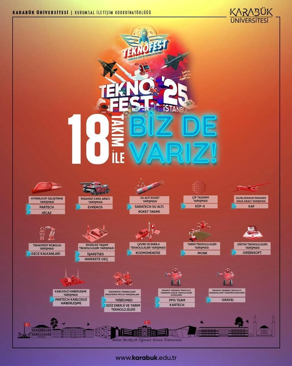 Karabük Üniversitesi (KBÜ), Türkiye’nin ilk ve tek, dünyanın ise en büyük havacılık, uzay ve teknoloji festivali olan TEKNOFEST’te önemli bir başarıya imza attı.