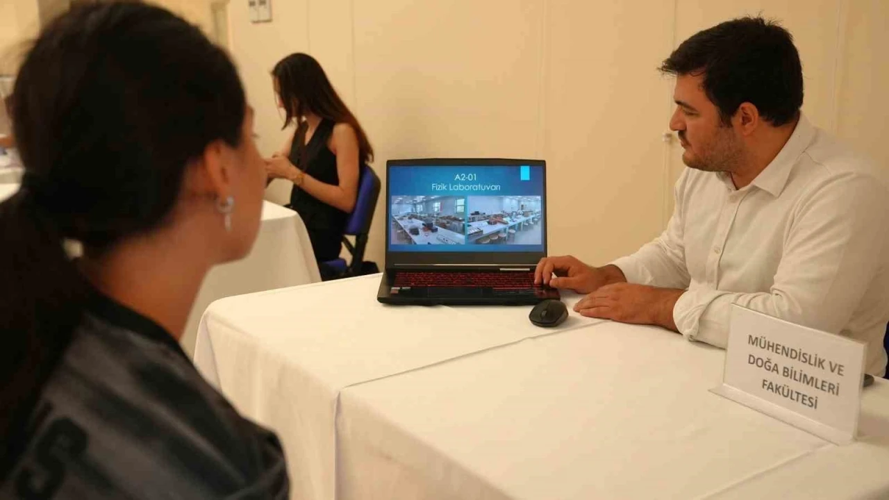 Üniversitenin Merkez Kütüphanesi’nde kurulan tercih alanlarında görev yapan akademik danışmanlar, adaylar ve velilerle yüz yüze görüşerek kapsamlı rehberlik sağlıyor.