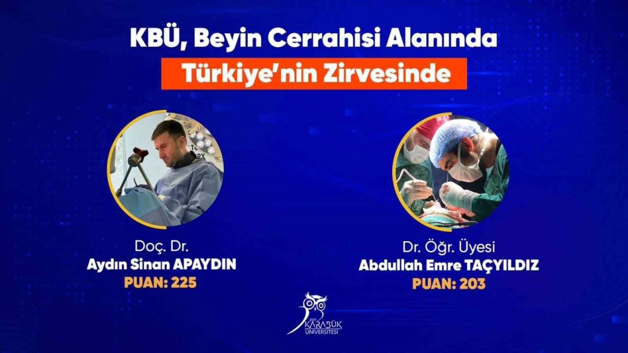 Karabük Üniversitesi Tıp Fakültesi Beyin ve Sinir Cerrahisi Anabilim Dalı, akademik yayın performansında Türkiye genelinde dikkat çekici bir başarıya imza attı. YÖKSİS (Yükseköğretim Bilgi Sistemi) tarafından açıklanan 2025 yılı verilerine göre, ülke genelindeki tüm beyin cerrahları arasında bilimsel üretkenlikte Doç. Dr. Aydın Sinan Apaydın 3., Dr. Öğr. Üyesi Abdullah Emre Taçyıldız ise 4. sırada yer aldı.