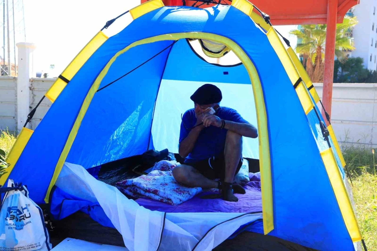 Bu olayın sonucunda çıkan tartışmada eşine bir tokat vurarak evden kovduğunu söyleyen Necdet T, "Bir gün sonra kapımı polisler çaldı. Eşimin darp raporu alarak uzaklaştırma kararı aldırdığını ve evi terk etmem gerektiğini söylediler. Bir haftadır dışardayım. Beni aldatma ilişkisini asla kabul edemem. Eşyalarımı istedim vermedi. Yasağı ihlal etmemek için mahallenin çocuklarını gönderdim. Çocukları azarlayıp kovdu. En son dün 112’yi aradım. Ekim ayında olduğumuzu üşüdüğümü, yardım etmelerini istedim. 2 polis memuru geldi, durumumu onlara da izah ettim. Gidip eşyalarımı aldılar. Birlikte eşyaları indirdik. Buraya getirdim, çadırı kurdum. Çöpten bulduğum kovaya su doldurup güneşe koyuyorum. Ilıklaşınca başımı yıkıyorum" dedi.