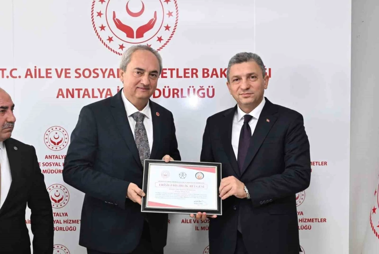 Engelli ve hareket kabiliyeti kısıtlı vatandaşların yaşamlarını kolaylaştırmaya yönelik çalışmaları nedeniyle Kepez Belediyesi’nin Şefkat ve Huzurevi’ne ‘Erişilebilirlik Belgesi’ verildi. Kepez Belediye Başkanı Mesut Kocagöz, bu önemli belgeyi Antalya Valisi Hulusi Şahin’in elinden aldı.