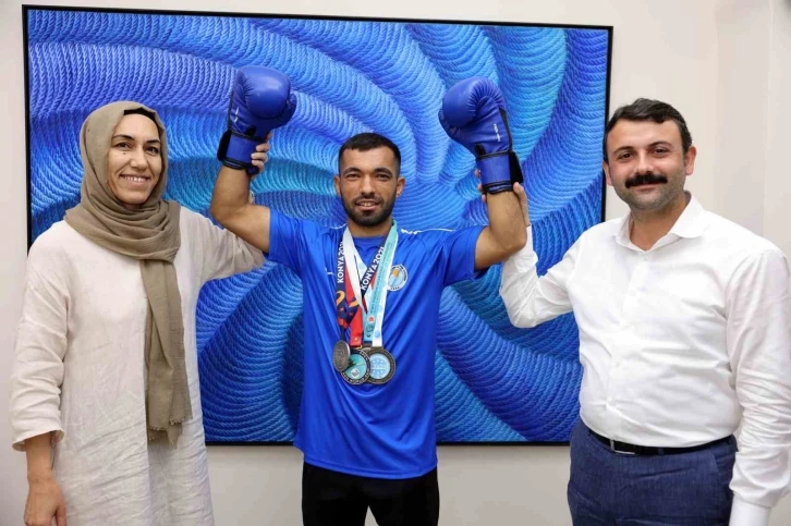 Akdeniz Belediye Spor Kulübü bünyesinde mücadele eden milli sporcu Hatip Emlek, Makedonya’da gerçekleştirilen şampiyonayı kazanarak kente döndü. Yeni başarılara imza atmayı hedefleyen Emlek, önce 6 Eylül’de Bakü’de gerçekleştirilecek Profesyonel Boks Müsabakasında, ardından da Atina’da, 2-10 Kasım arasında düzenlenecek Kick Boks Avrupa Şampiyonası’nda milli takımı temsil edecek. Milli sporcu, kulüp başkanı Nuri Ay ve antrenör Nasır Kandemir ile Akdeniz Belediye Başkanı Hoşyar Sarıyıldız’ı ziyaret etti. "Başarılarla döneceğinden şüphemiz yok"
