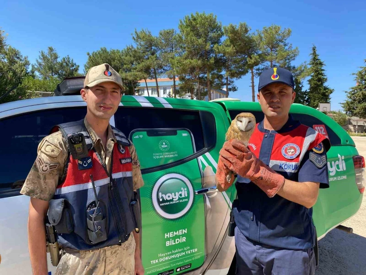Kilis’in Elbeyli ilçesine bağlı Alahan köyünde jandarma devriyesi sırasında yaralı halde bulunan peçeli baykuş, koruma altına alındı.
