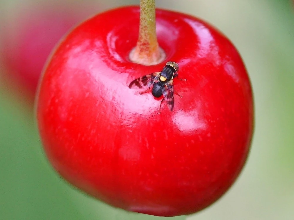 4-5 mm boyunda, parlak siyah göğüs ve göğüsün uç kısmında sarı renkli üçgen biçiminde yapıya sahip olan kiraz sineği meyveleri kahverengileştirerek çürütüyor, aynı zamanda meyvelerin zamanından önce olgunlaşarak dökülmelerine neden oluyor. Meyvelerde kurtlanmaya neden olan kiraz sineği ürünlerin piyasa değerini de düşürüyor.