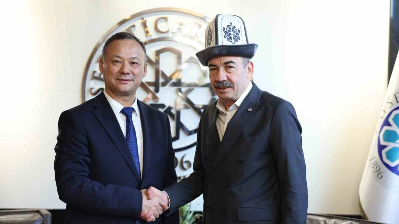 Başkan Gülsoy’un bir diğer ziyaretçisi, Kırgızistan’ın Ankara Büyükelçisi Ruslan Kazakbaev oldu. Ziyarette kardeş ülke Kırgızistan’la olan köklü bağlara vurgu yapan Başkan Gülsoy, "Dinimiz, dilimiz, kültürümüz ortak. Kardeşliğimizi daha ileriye taşımak istiyorsak, bu samimi ilişkileri ekonomik alana da yansıtmak durumundayız" dedi.