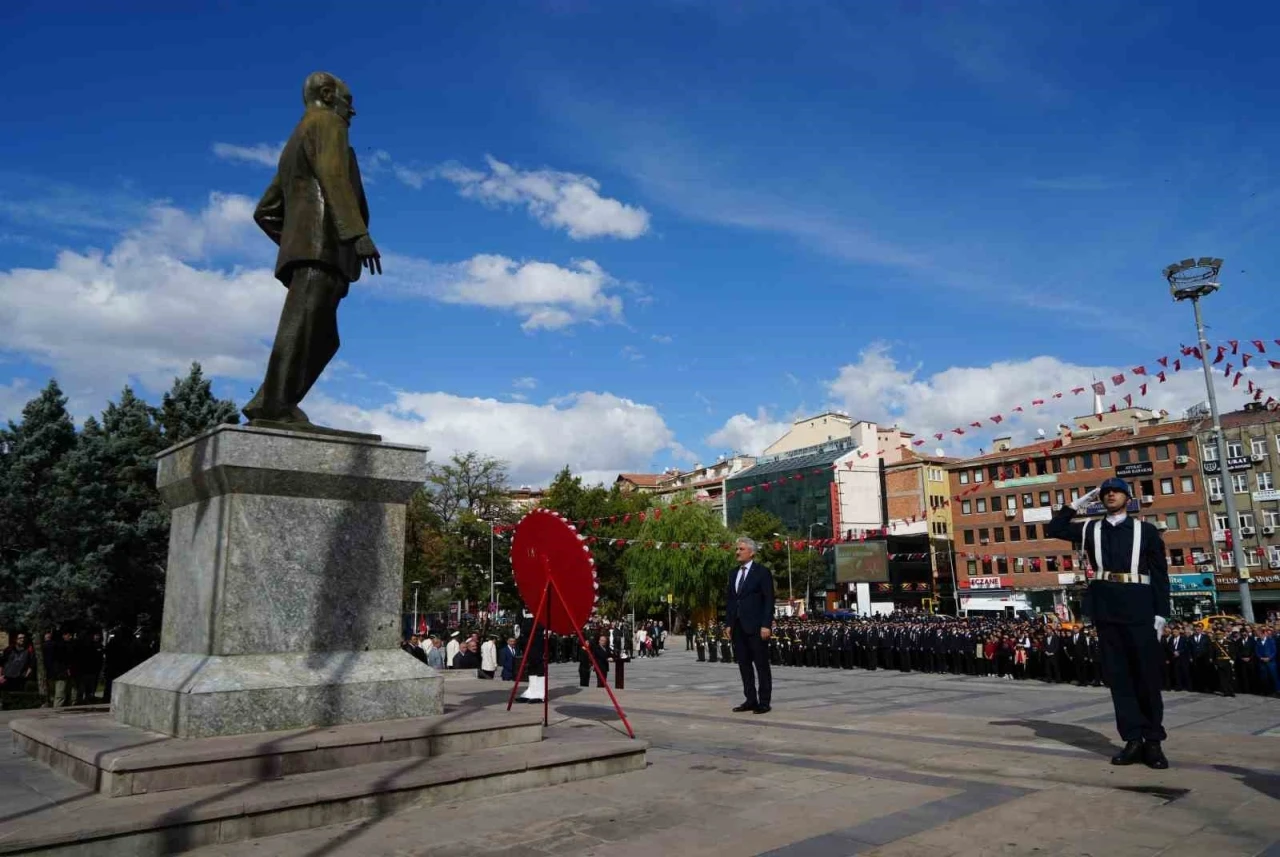 Kırıkkale Valiliğince, Cumhuriyet’in 102’nci yıl dönümü ve 29 Ekim Cumhuriyet Bayramı dolayısıyla Cumhuriyet Meydanı’nda tören düzenlendi. Törende, Vali Mehmet Makas, Garnizon ve Mühimmat Komutanı Tuğgeneral Mehmet Ali Durmuş ile Belediye Başkanı Ahmet Önal, Atatürk büstüne çelenk sundu. Saygı duruşunda bulunulması ve İstiklal Marşı’nın okunmasının ardından tören sona erdi.