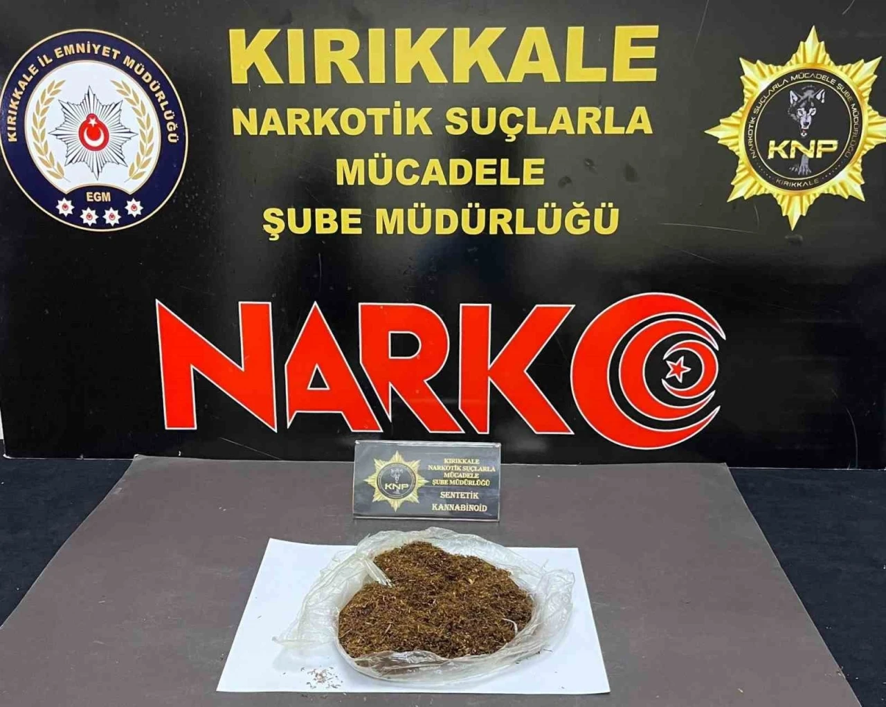 Kırıkkale’de üzerinde bir miktar uyuşturucu maddeyle yakalanan şahıs hakkında adli işlem başlatıldı.