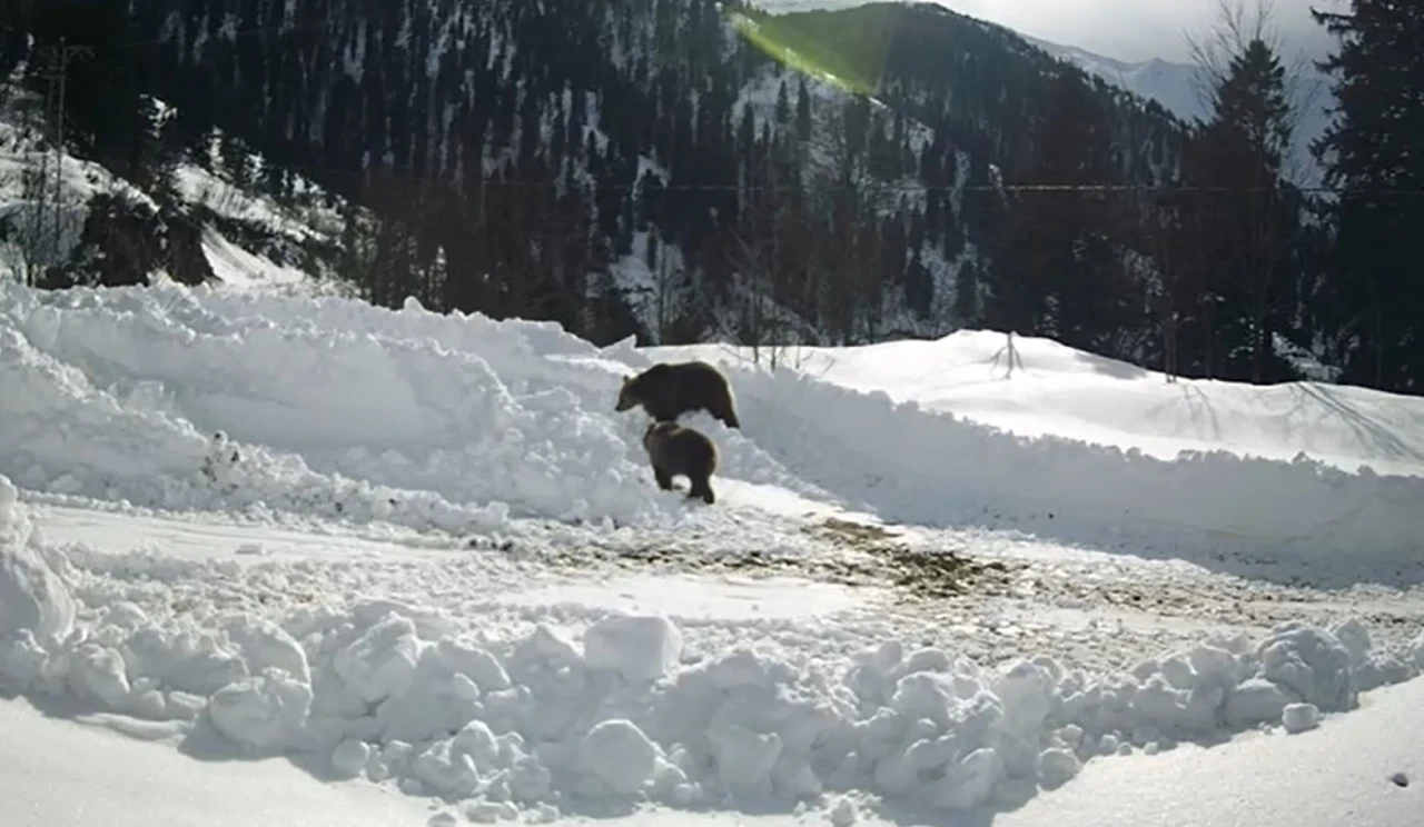Rize’nin Çayeli ilçesinde kış uykusuna yatmayarak gezinen 2 ayı, arıcıların kurduğu güvenlik kamerasına yakalandı.