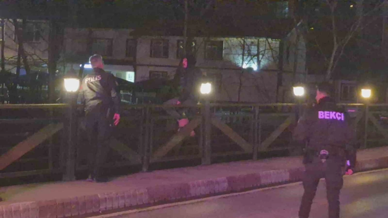 Bartın’da bir genç, kız arkadaşının kadın sığınma evine alındığını söyleyerek köprüden atlamak istedi. Uzun süre ikna edilmeye çalışılan genç, polisin müdahalesi ile korkuluklardan indirildi.